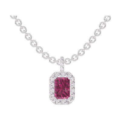 « L'ATELIER » Nº205160Colgante Oro blanco 9 quilates - Rubí Rectángulo 0.3 quilates - Halo Diamante - Engastado Diamante - Cadenas Esclavas