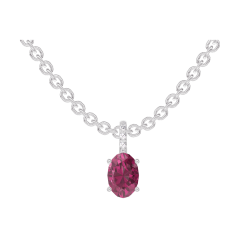 Colgante Oro blanco 18 quilates - Rubí Ovalo 0.3 quilates - Engastado Diamante - Cadenas Esclavas
