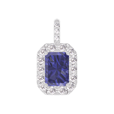 « L'ATELIER » Nº206295Colgante Oro blanco 18 quilates - Zafiro azul Rectángulo 0.3 quilates - Halo Diamante - Engastado Diamante - Ninguna cadena