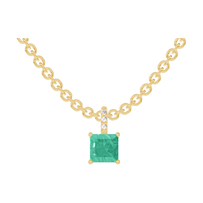 « L'ATELIER » Nº207221Colgante Oro amarillo 18 quilates - Esmeralda Princesa 0.3 quilates - Engastado Diamante - Cadenas Esclavas