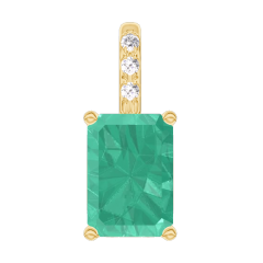Colgante Oro amarillo 18 quilates - Esmeralda Rectángulo 0.3 quilates - Engastado Diamante - Ninguna cadena