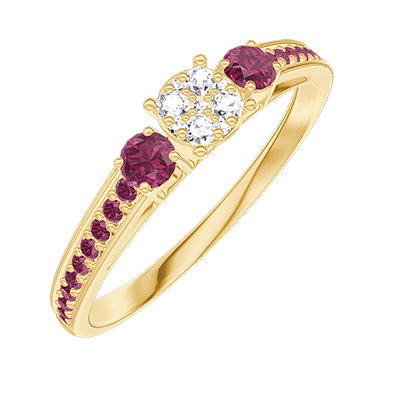 « L'ATELIER » Nº209049Anillo Oro amarillo 18 quilates - Conjunto de diamantes naturales redondo equivalente 0.3 - Piedras laterales Rubí - Engastado Rubí 4.8