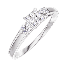 « L'ATELIER » N.º 209124Anillo Oro blanco 9 quilates - Conjunto de diamantes naturales Princesa equivalente 0.3 - Piedras laterales Diamante