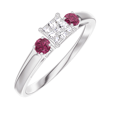 « L'ATELIER » Nº209143Anillo Oro blanco 18 quilates - Conjunto de diamantes naturales Princesa equivalente 0.3 - Piedras laterales Rubí