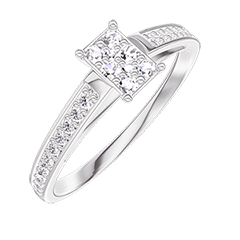 Anillo Oro blanco 9 quilates - Conjunto de diamantes naturales Rectángulo equivalente 0.3 - Engastado Diamante