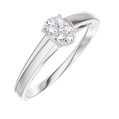 Anillo Oro blanco 18 quilates - Conjunto de diamantes naturales Ovalo equivalente 0.3
