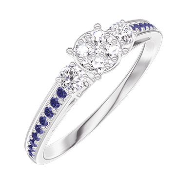 « L'ATELIER » N.º 209636Anillo Oro blanco 9 quilates - Conjunto de diamantes naturales redondo equivalente 0.5 - Piedras laterales Diamante - Engastado Zafiro azul 4.9