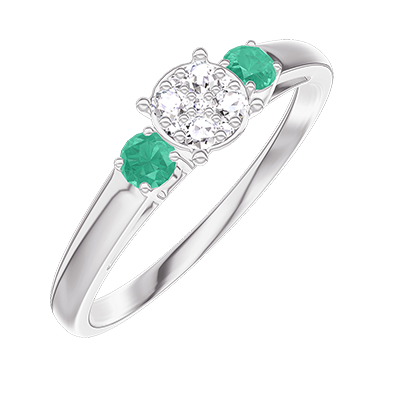 « L'ATELIER » Nº209684Anillo Oro blanco 9 quilates - Conjunto de diamantes naturales redondo equivalente 0.5 - Piedras laterales Esmeralda 4.9