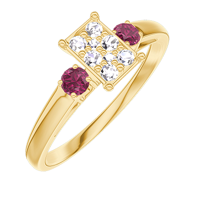 « L'ATELIER » Nº209842Anillo Oro amarillo 9 quilates - Conjunto de diamantes naturales Rectángulo equivalente 0.5 - Piedras laterales Rubí