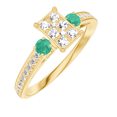 « L'ATELIER » Nº209886Anillo Oro amarillo 9 quilates - Conjunto de diamantes naturales Rectángulo equivalente 0.5 - Piedras laterales Esmeralda - Engastado Diamante
