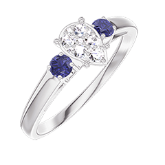 « L'ATELIER » N.º 210064Anillo Oro blanco 9 quilates - Conjunto de diamantes naturales Pera equivalente 0.5 - Piedras laterales Zafiro azul