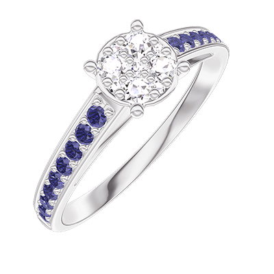 « L'ATELIER » N.º 210216Anillo Oro blanco 9 quilates - Conjunto de diamantes naturales redondo equivalente 0.7 - Engastado Zafiro azul 5