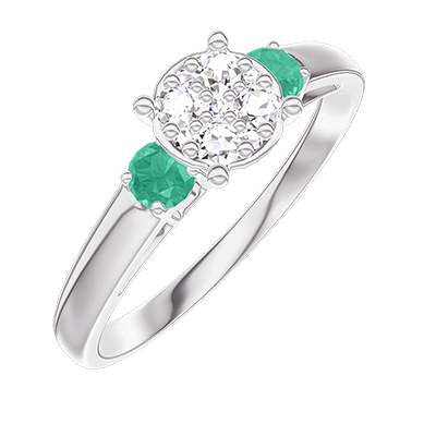 « L'ATELIER » Nº210284Anillo Oro blanco 9 quilates - Conjunto de diamantes naturales redondo equivalente 0.7 - Piedras laterales Esmeralda 5 (7)