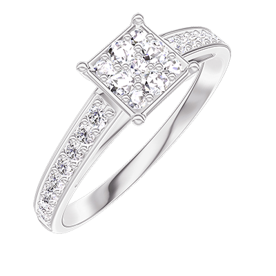 « L'ATELIER » N.º 210308Anillo Oro blanco 9 quilates - Conjunto de diamantes naturales Princesa equivalente 0.7 - Engastado Diamante