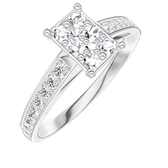 Anillo Oro blanco 18 quilates - Conjunto de diamantes naturales Rectángulo equivalente 0.7 - Engastado Diamante
