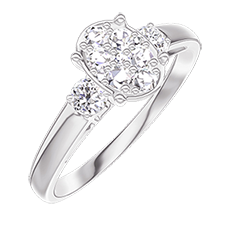 Anillo Oro blanco 9 quilates - Conjunto de diamantes naturales Ovalo equivalente 0.7 - Piedras laterales Diamante