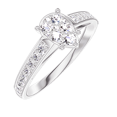 Anillo Oro blanco 18 quilates - Conjunto de diamantes naturales Pera equivalente 0.7 - Engastado Diamante