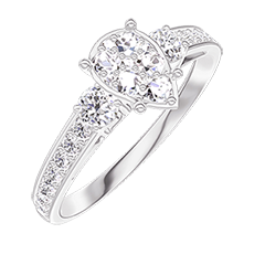 Anillo Oro blanco 9 quilates - Conjunto de diamantes naturales Pera equivalente 0.7 - Piedras laterales Diamante - Engastado Diamante