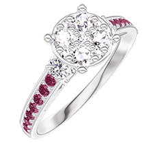 Anillo Oro blanco 18 quilates - Conjunto de diamantes naturales redondo equivalente 1 - Piedras laterales Diamante - Engastado Rubí