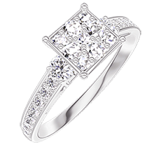 Anillo Oro blanco 18 quilates - Conjunto de diamantes naturales Princesa equivalente 1 - Piedras laterales Diamante - Engastado Diamante