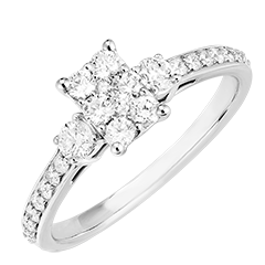 Anillo Oro blanco 18 quilates - Conjunto de diamantes naturales Rectángulo equivalente 1 - Piedras laterales Diamante - Engastado Diamante