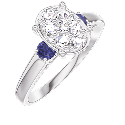 « L'ATELIER » Nº211163Anillo Oro blanco 18 quilates - Conjunto de diamantes naturales Ovalo equivalente 1 - Piedras laterales Zafiro azul 4.8