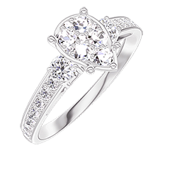 Anillo Oro blanco 9 quilates - Conjunto de diamantes naturales Pera equivalente 1 - Piedras laterales Diamante - Engastado Diamante
