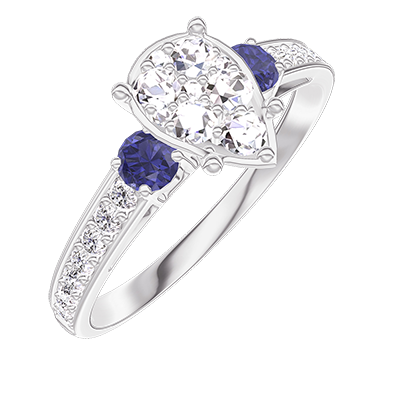 « L'ATELIER » Nº211267Anillo Oro blanco 18 quilates - Conjunto de diamantes naturales Pera equivalente 1 - Piedras laterales Zafiro azul - Engastado Diamante