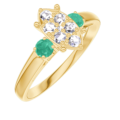 « L'ATELIER » N.º 211381Anillo Oro amarillo 18 quilates - Conjunto de diamantes naturales Marquesa equivalente 1 - Piedras laterales Esmeralda
