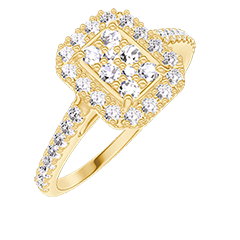 « L'ATELIER » N.º 211502Anillo Oro amarillo 9 quilates - Conjunto de diamantes naturales Rectángulo equivalente 0.5 - Halo Diamante - Engastado Diamante 4.9
