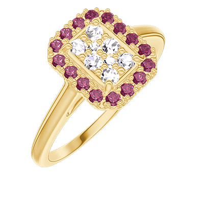 « L'ATELIER » N.º 211513Anillo Oro amarillo 18 quilates - Conjunto de diamantes naturales Rectángulo equivalente 0.5 - Halo Rubí 4.9