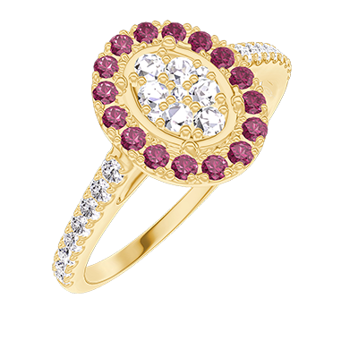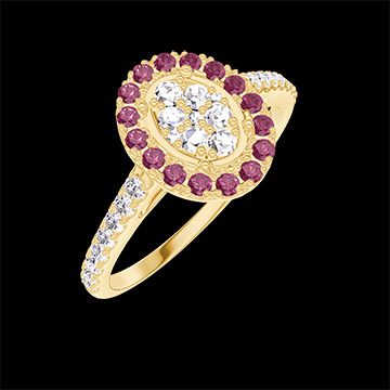 « L'ATELIER » Nº211566Anillo Oro amarillo 9 quilates - Conjunto de diamantes naturales Ovalo equivalente 0.5 - Halo Rubí - Engastado Diamante 4.8