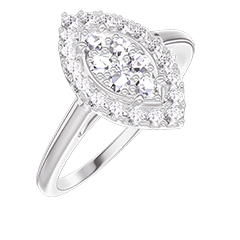 Anillo Oro blanco 9 quilates - Conjunto de diamantes naturales Marquesa equivalente 0.5 - Halo Diamante