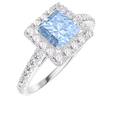 « L'ATELIER » N.º 211871Anillo Oro blanco 9 quilates - Topacio azul Princesa 0.5 quilates - Halo Diamante - Engastado Diamante 4.6