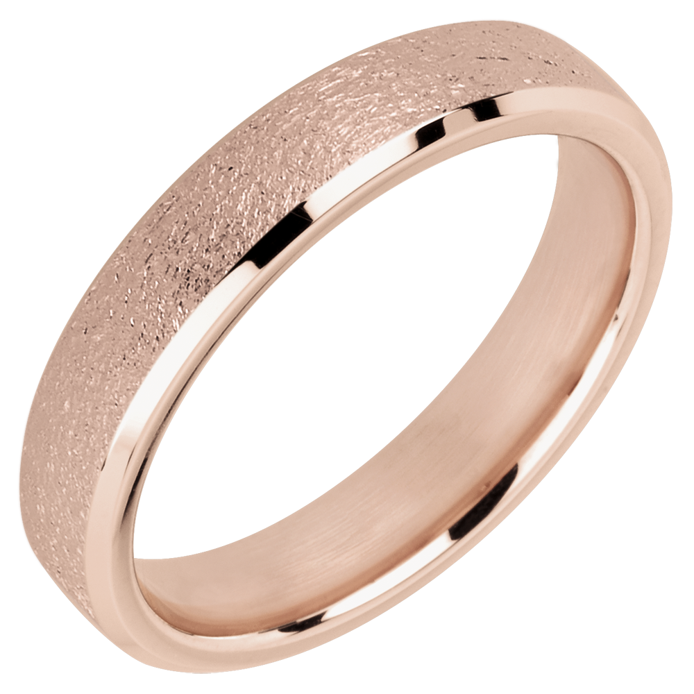 Anillo de matrimonio 4 mm Oro rosa rugoso 9 quilates - Abombado
