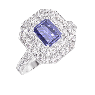 « L'ATELIER » N.º 405214Anillo Oro blanco 18 quilates - Zafiro azul Rectángulo 0.5 quilates - Halo Diamante - Engastado Diamante