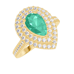 Anillo Oro amarillo 9 quilates - Esmeralda Pera 0.5 quilates - Halo Diamante - Engastado Diamante