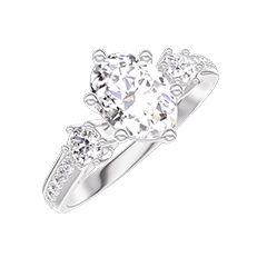 Anillo Oro blanco 18 quilates - Diamante de laboratorio Ovalo 0.7 quilates - Piedras laterales Diamante de laboratorio - Engastado Diamante de laboratorio