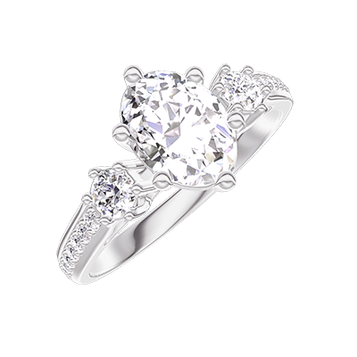 « L'ATELIER » Nº425387Anillo Oro blanco 9 quilates - Diamante de laboratorio Ovalo 0.7 quilates - Piedras laterales Diamante de laboratorio - Engastado Diamante de laboratorio