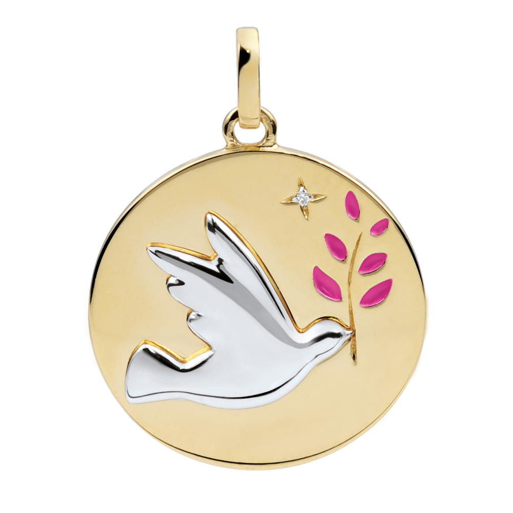 Medalla Paloma de la Paz - Laca Rosa - 1 Diamante - 9 quilates