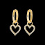 Una criolla adornada con su dije de oro amarillo en forma de corazón y empedrada con diamantes brillantes. Dimensiones del anillo del dije: 3,1 mm de diámetro.