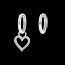 Una criolla adornada con su dije de oro blanco en forma de corazón y empedrada con diamantes brillantes. Dimensiones del anillo del dije: 3,1 mm de diámetro.