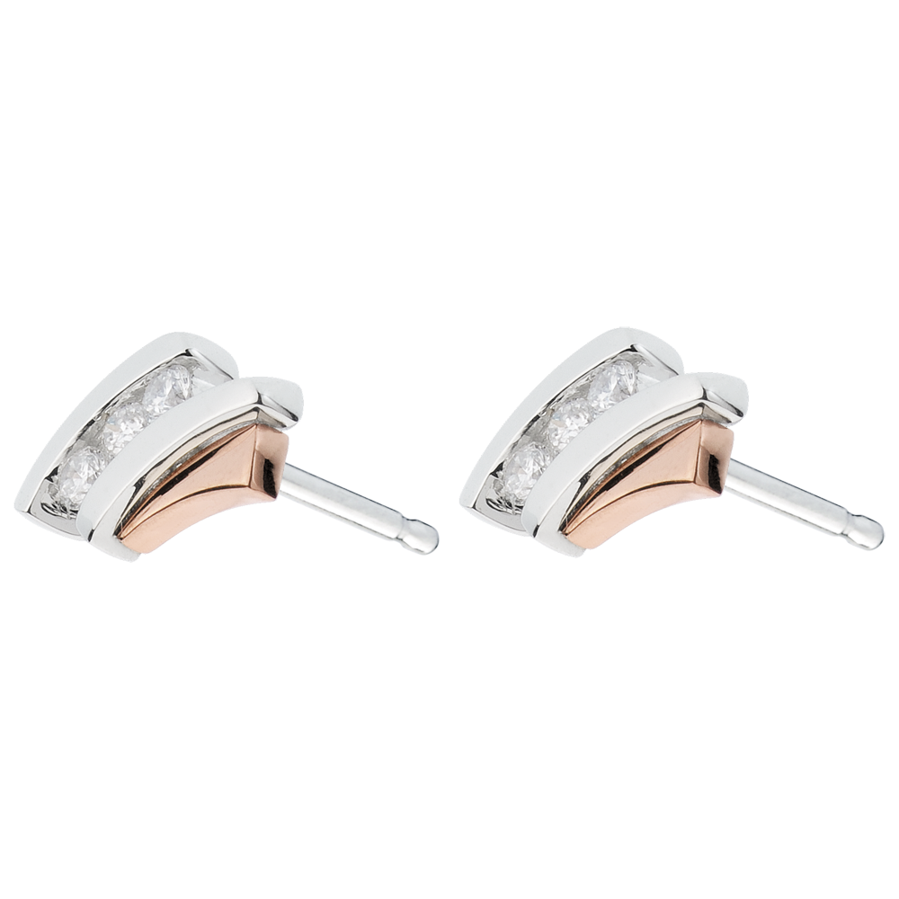 Pendientes Nido Precioso - Triologia - oro blanco y oro rosa 18 quilates - 3 diamantes 0.21 quilate