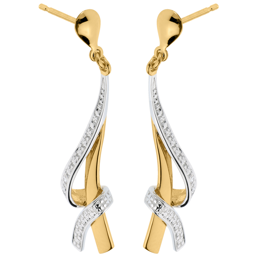 Pendientes Anudados - oro amarillo y oro blanco empedrados 18 quilates
