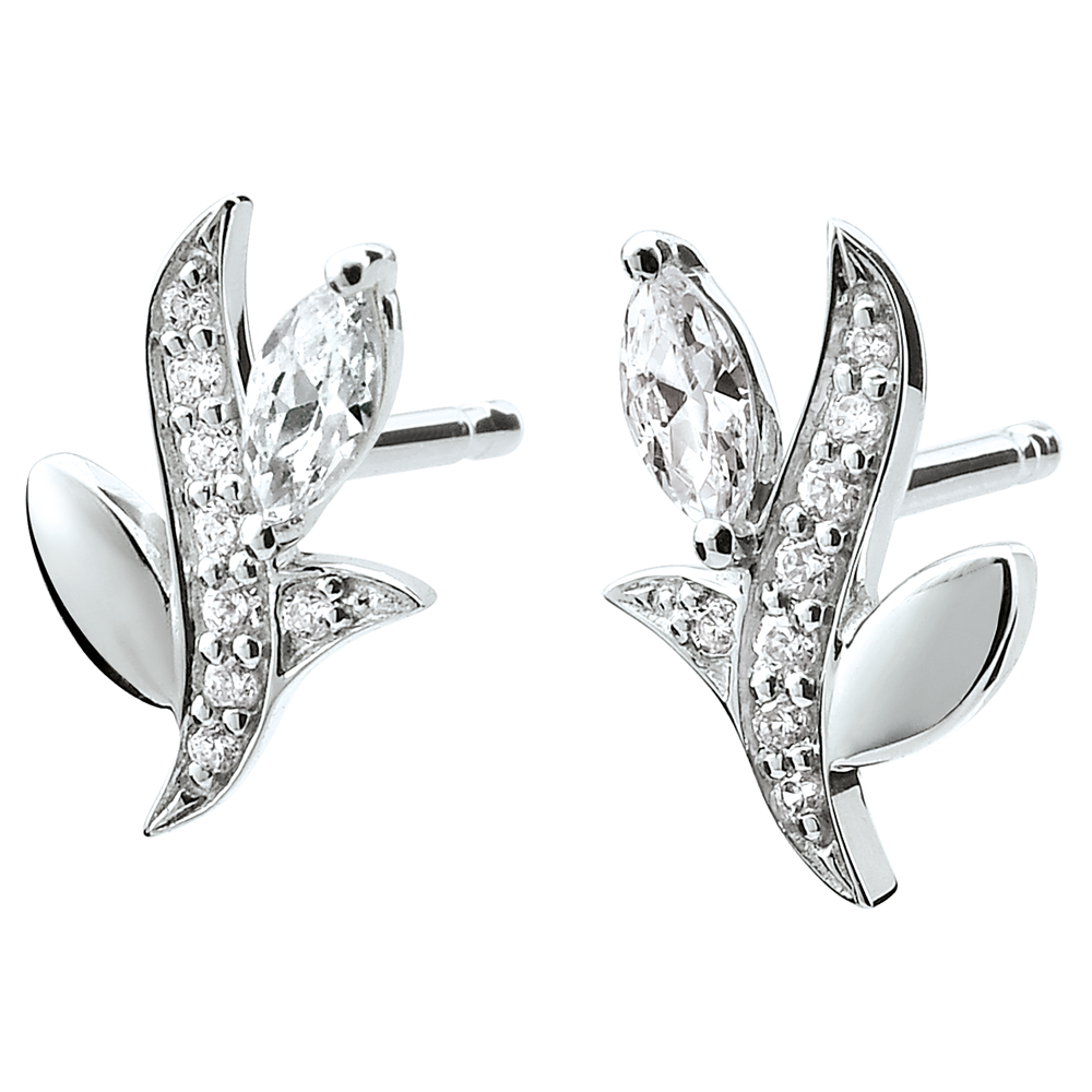 JARDíN ENCANTADO N.º 8Pendientes cortos Hojas - Oro blanco 9 quilates - Diamante ID : 3541