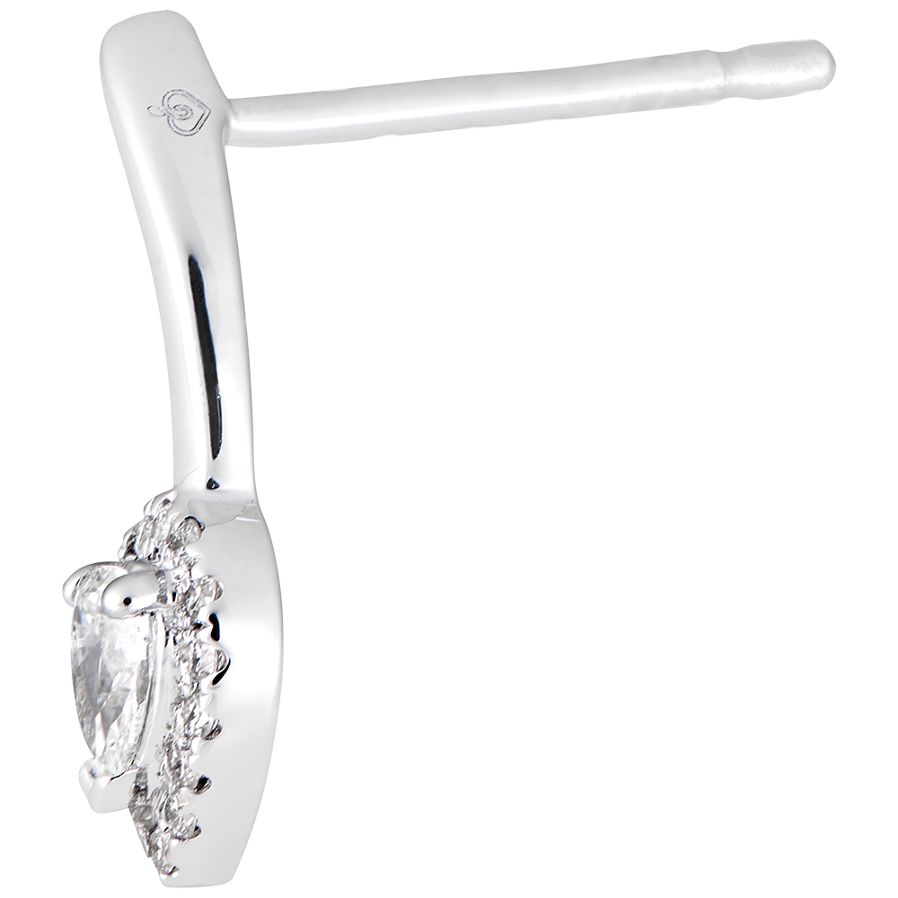 Un par de pendientes con diamantes engastados, delicados y ligeros, se pueden usar contra el lóbulo o colgando.