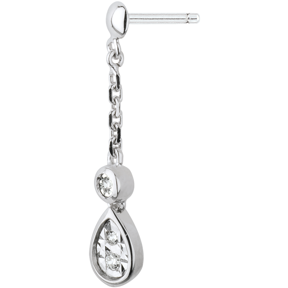 Una bola y una gota de oro blanco se mecen al cabo de un chainette y llevan cada una su corazón un diamante.