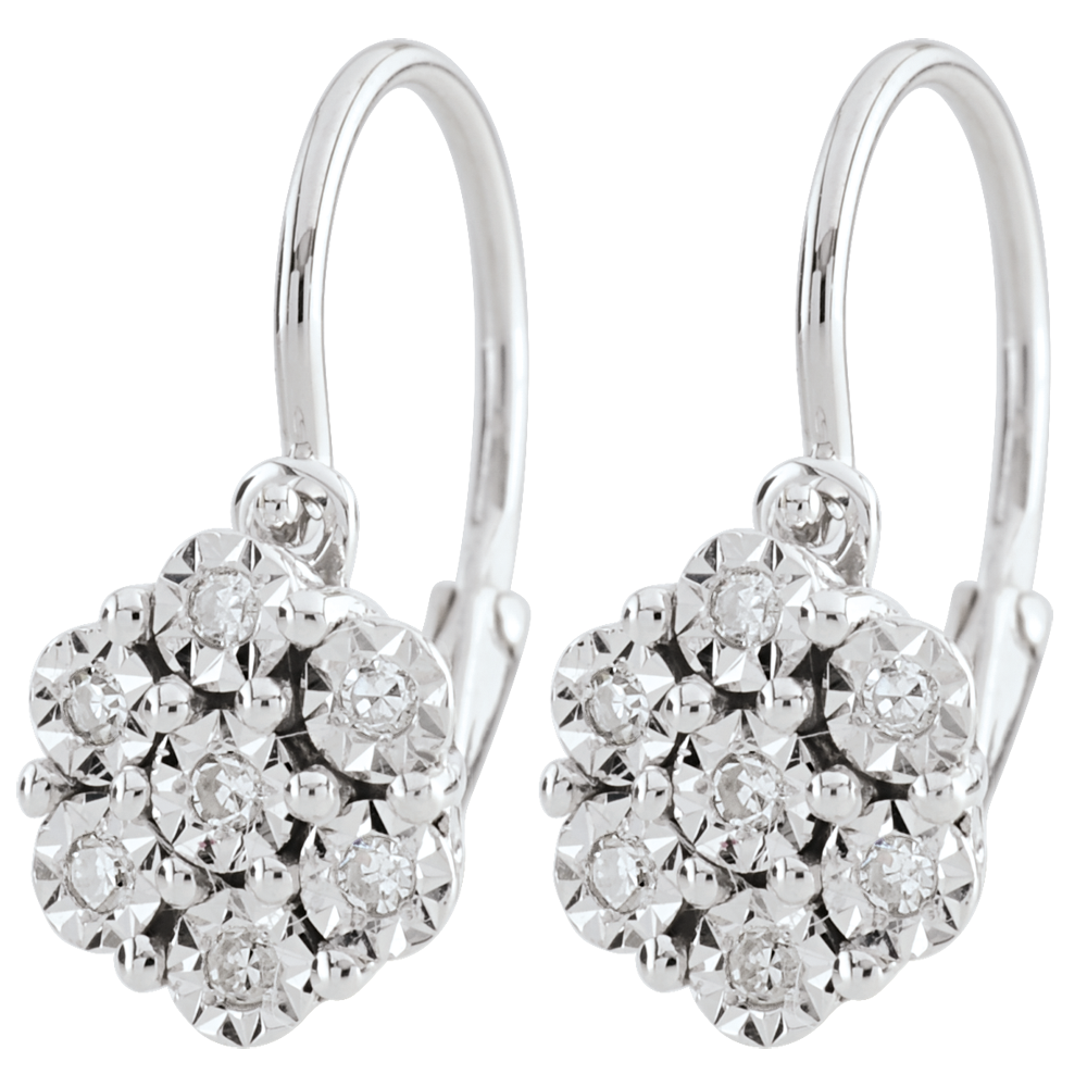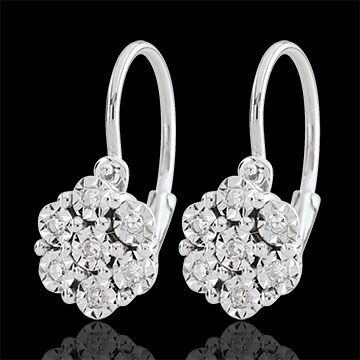 Pendientes Frescura - Flor de Copo de Nieve - 14 diamantes y oro blanco 9 quilates
