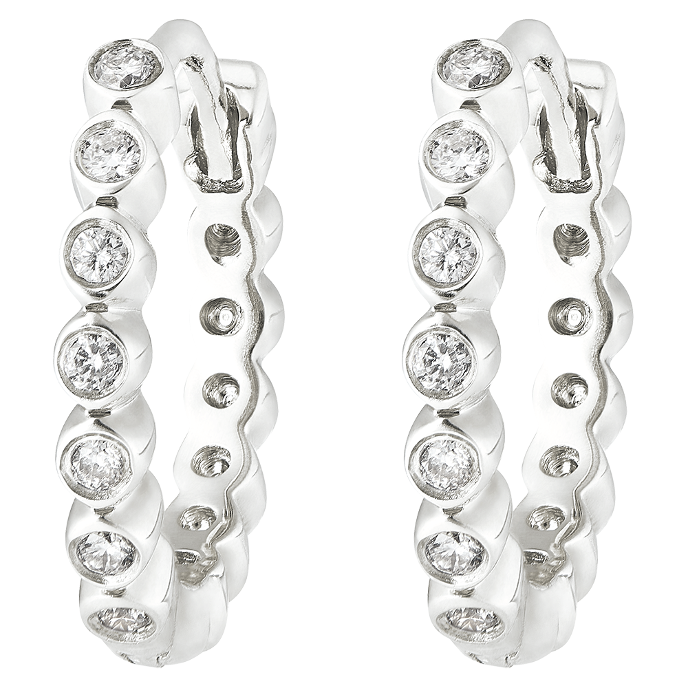 Un círculo de perlas de oro blanco engastadas con diamantes. Un par de criollas femeninas que son a la vez clásicas y originales.14 diamantes: 0,07 quilates.