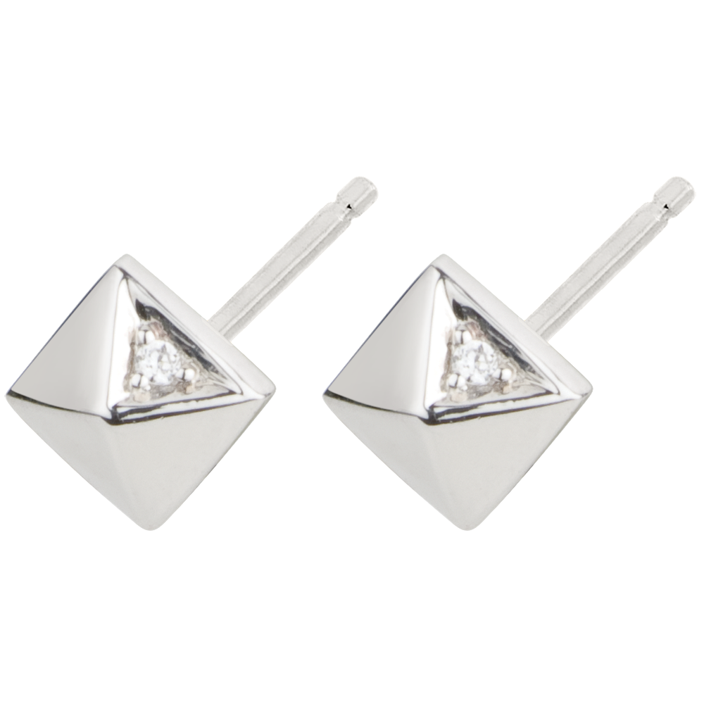 Estas preciosas pirámides están inspiradas en la forma de los diamantes en bruto, en una de sus facetas podemos hallar algunos diamantes. Se trata de una creación elegante y moderna.